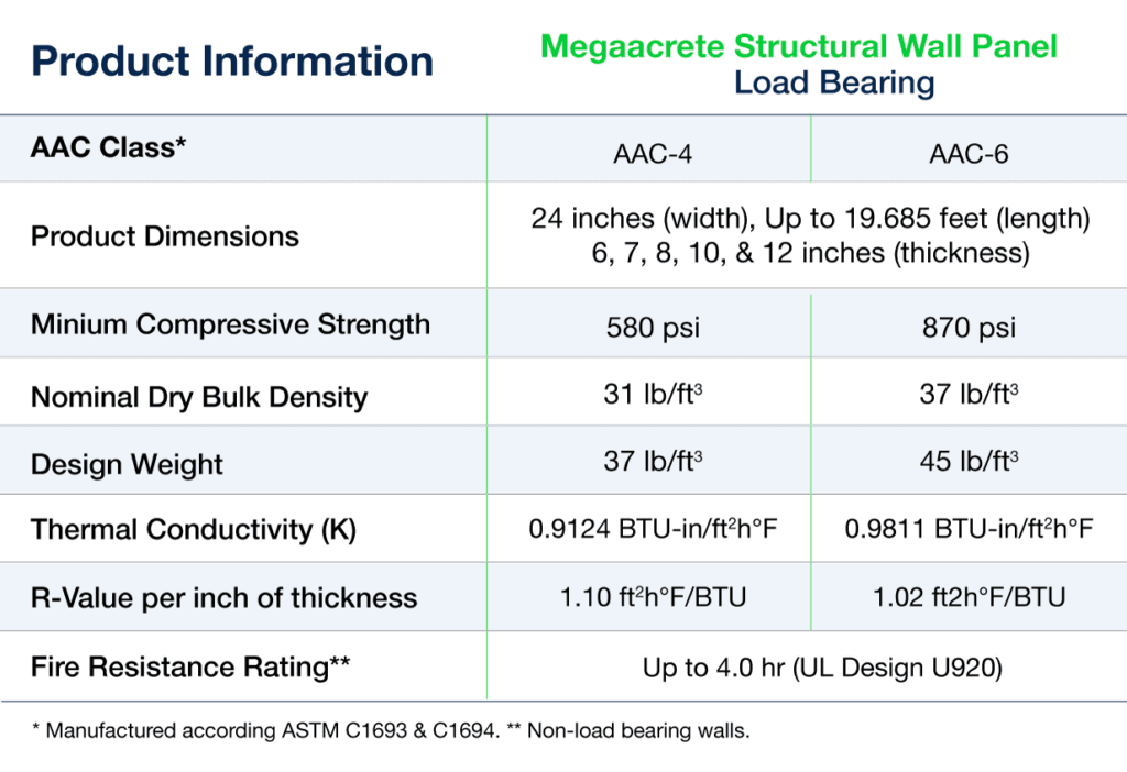 The Megaacrete Structural Wall Panel is a load-bearing precast wall system that combines structure, enclosure, and insulation in one solution. Made from Autoclaved Aerated Concrete (AAC), these panels are connected with steel-reinforced concrete posts and a ring beam poured on-site, ensuring stability and performance. This integrated design simplifies construction, offering efficiency and durability for a variety of building projects.